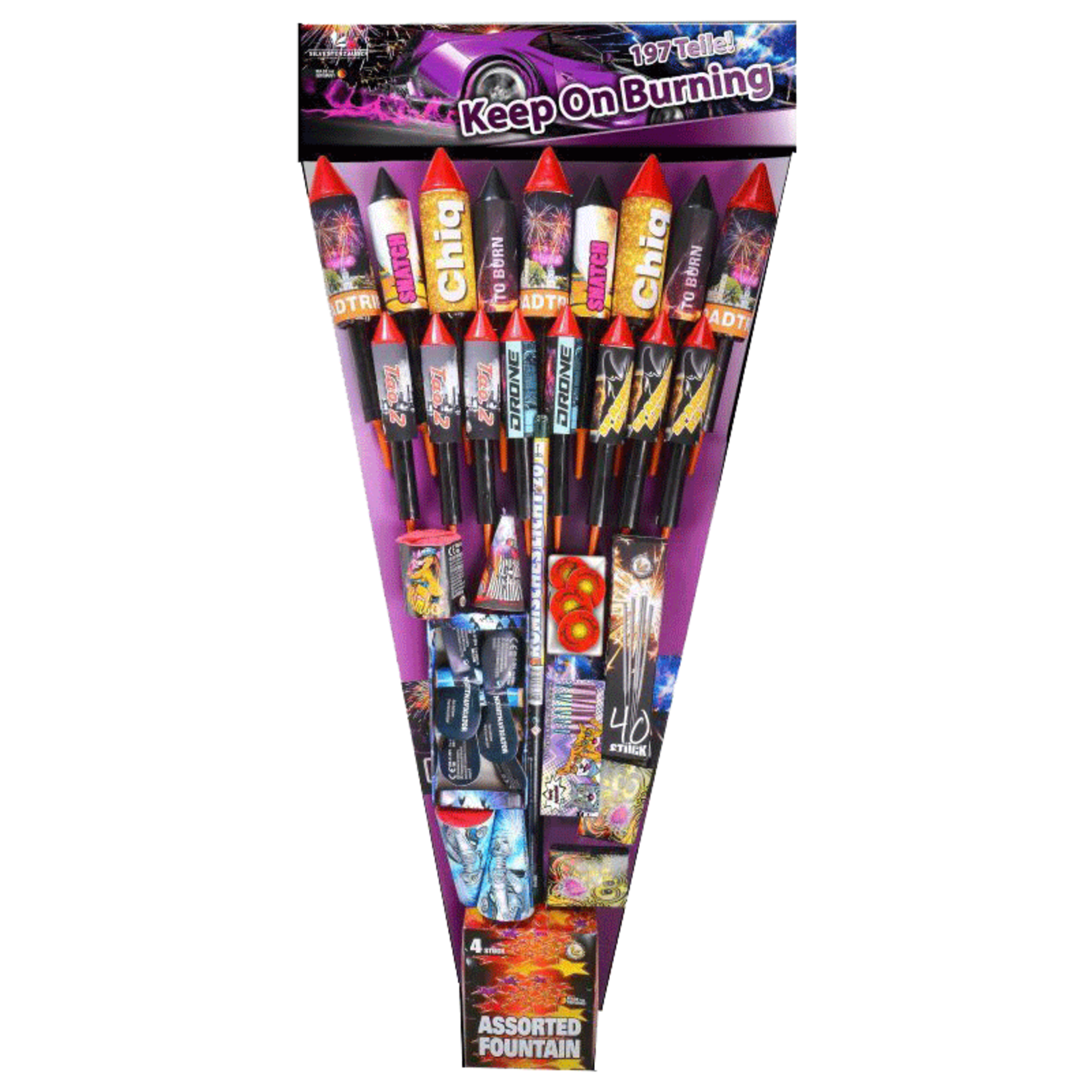 Sehr großzügig gefülltes Feuerwerksortiment mit extra viel Raketen. 197 Teile, davon 17 Raketen!