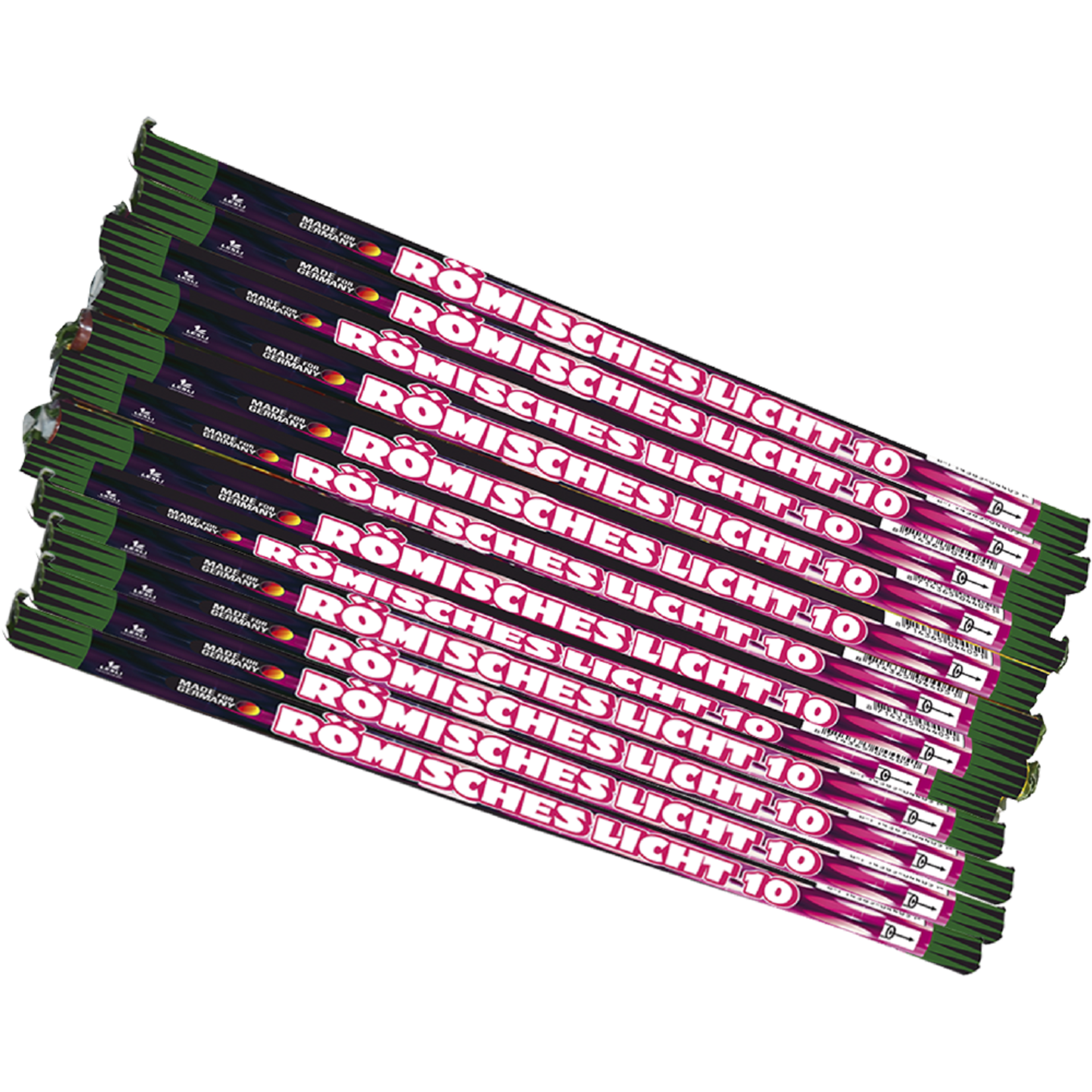 Römische Lichter mit 10 bunten Schuss. 12 Stück pro Packung.
