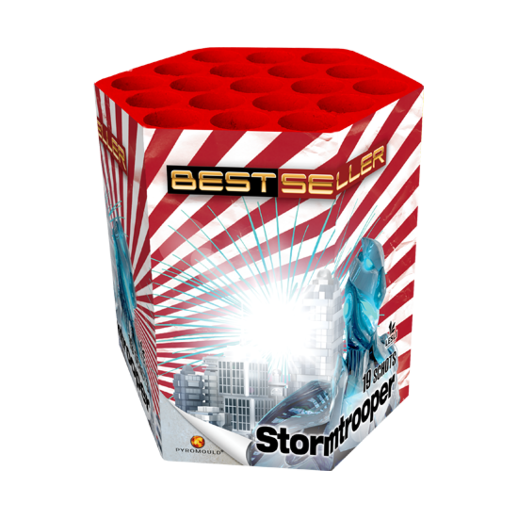 19 schots Pyromould® met prachtige gouden willows en gekleurde sterren.